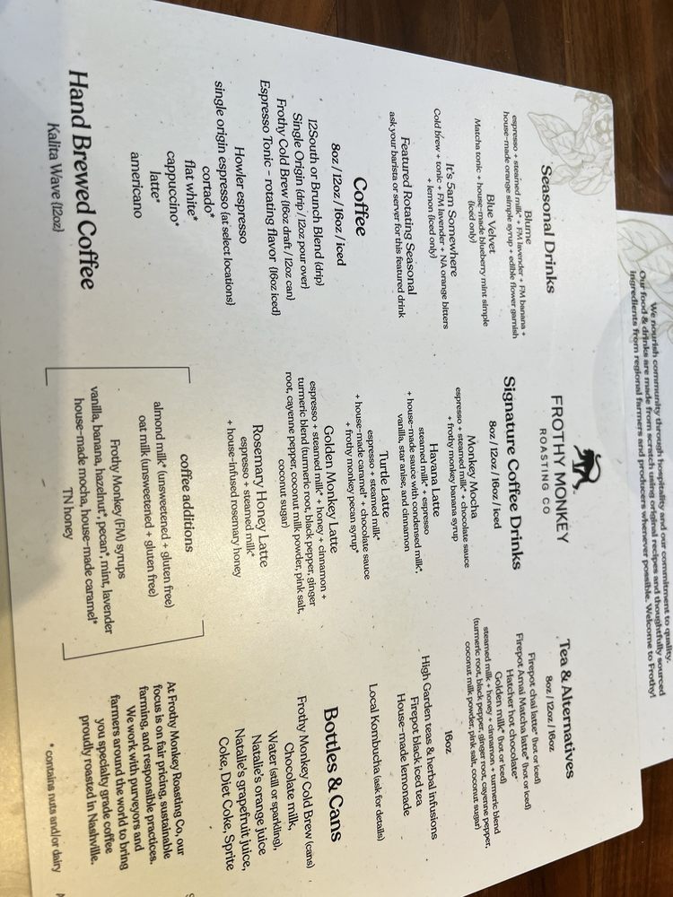 Introducing Frothy Monkey, a charming breakfast and brunch café located at 2320 Second Ave N in Birmingham, AL. This vibrant spot is renowned for its eclectic menu that seamlessly blends delicious options for both meat-lovers and plant-based enthusiasts. Highlights include the tantalizing Quinoa & Black Bean Burger and the delightful Rosemary Honey Latte, which even coffee traditionalists rave about. The café exudes a cozy, bohemian vibe, making it ideal for casual meet-ups or intimate gatherings.